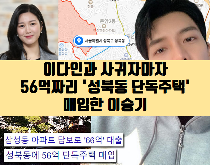 당시 이승기는 자신이 거주하던 서울 강남구 삼성동 아파트(서울 강남구 삼성동 ‘브라운스톤 레전드’ 아파트) 등을 담보로 66억원을 대출받아 성북동 단독주택을 56억 3천만원에 매입했다.