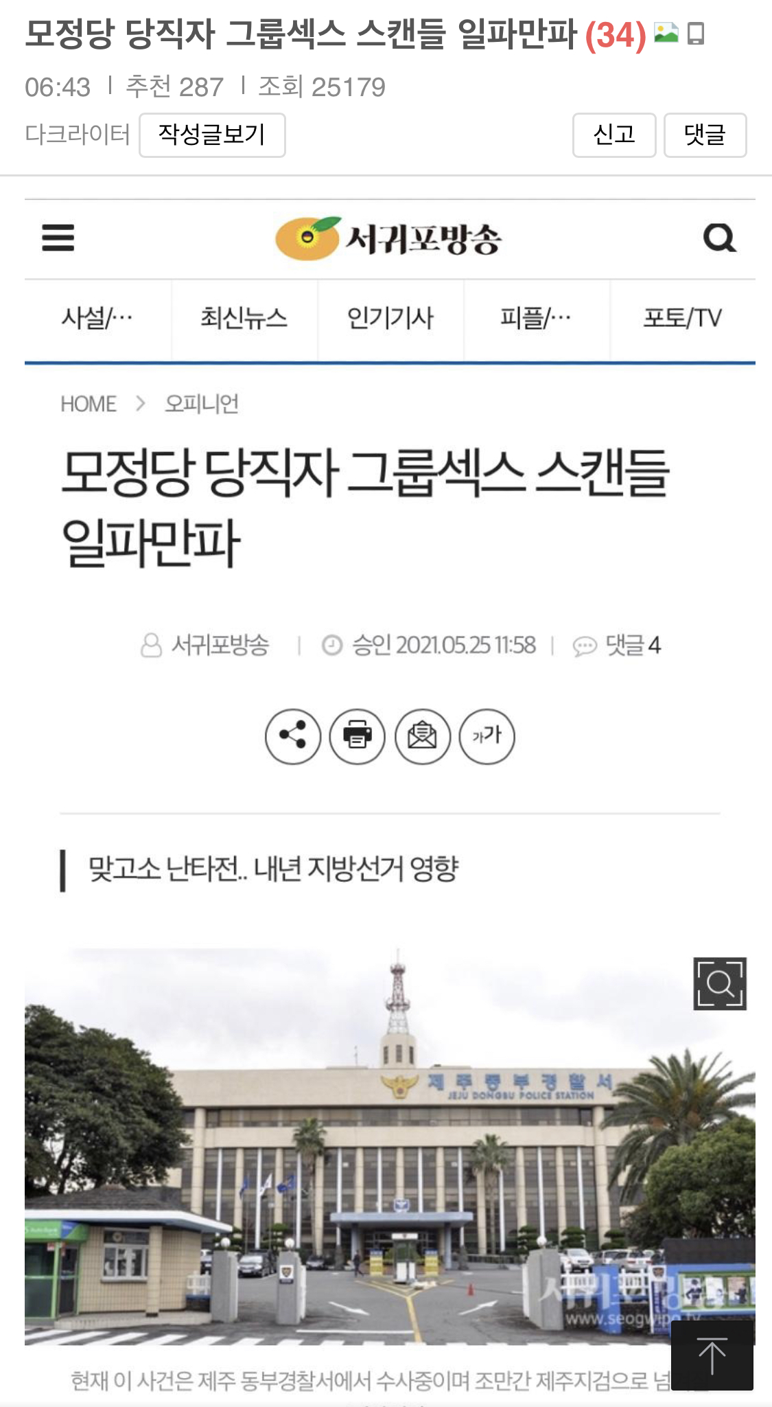 서귀포방송에 들어가 해당뉴스를 찾아보다